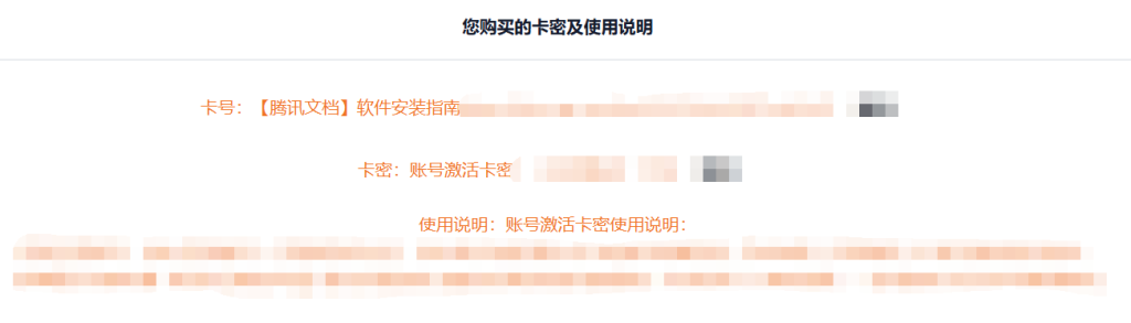 4.点击查看卡密后,会出现订单明细,明细分为两部分:前半部分的网址,就是软件安装包的获取下载地址和安装说明;后半部分是几组连号,就是软件的年费充值码,手工复制。把前半部分的网址粘贴到浏览器打开,就可以拿到软件安装包了。