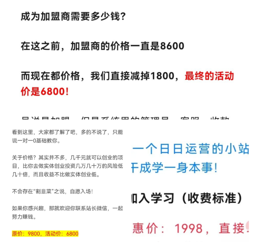卖代理、合伙人、加盟:上面提到了市面上加盟一个这类资源站在1980-6000+元,卖一单加盟就能赚几干