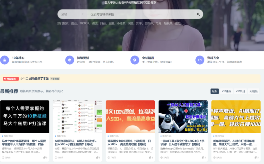 一个虚拟产品资源网站,多管道收入,做头部平台,自己做老板。