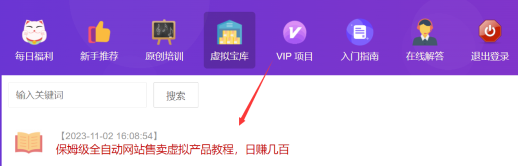 软件虚拟宝库也有操作教程,现在已经做了完善,小白也能轻松应对。包括从域名服务器到搭建网站+资源获取+支付对接+引流技巧的保姆级教程。